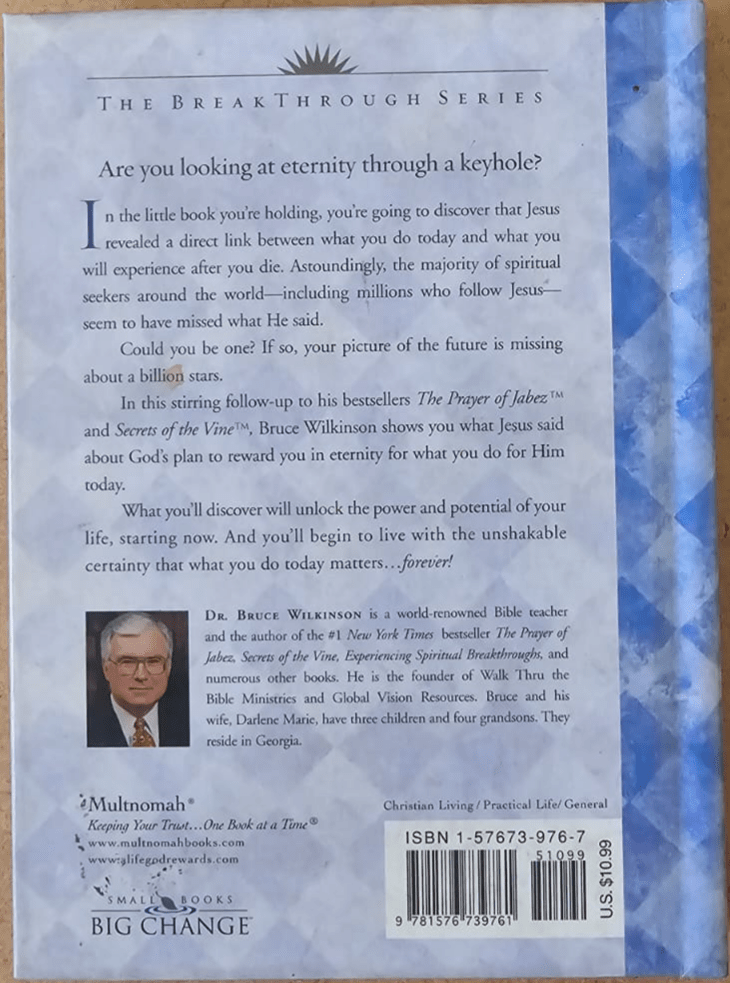 Bible teacher and spiritual counselor Bruce Wilkinson clarifies how the choices you’re making today are going to affect the quality of your life in heaven. As you investigate key Scriptures and apply them to your own situation with this visual, interactive resource, you’ll discover the most fulfilling life you’ve ever known.