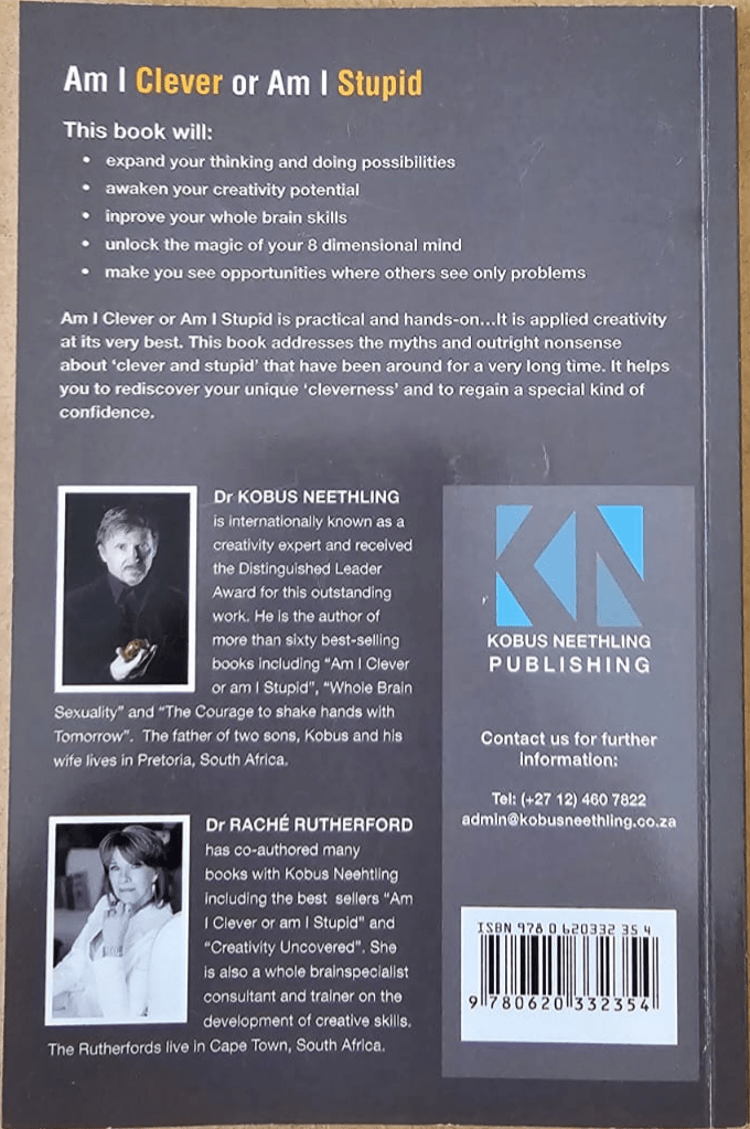 This book is practical and hands-on – it is applied creativity at its very best. The book addresses the myths and outright nonsense about ‘clever and stupid’ that have been around for a very long time. It helps you to rediscover your unique ‘cleverness’ and to regain a special kind of confidence in your own abilities.