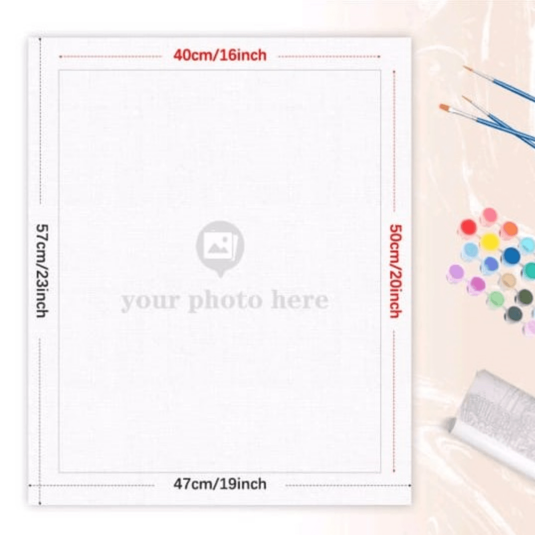 Canvas: Our 40cm x 50cm canvas is made from durable materials that ensure a smooth and enjoyable painting experience. The quality surface captures fine details and provides a perfect backdrop for your custom artwork.