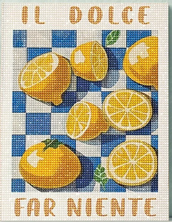 Diamond Dotting: Il Dolce Far Niente (Lemons on blue check)