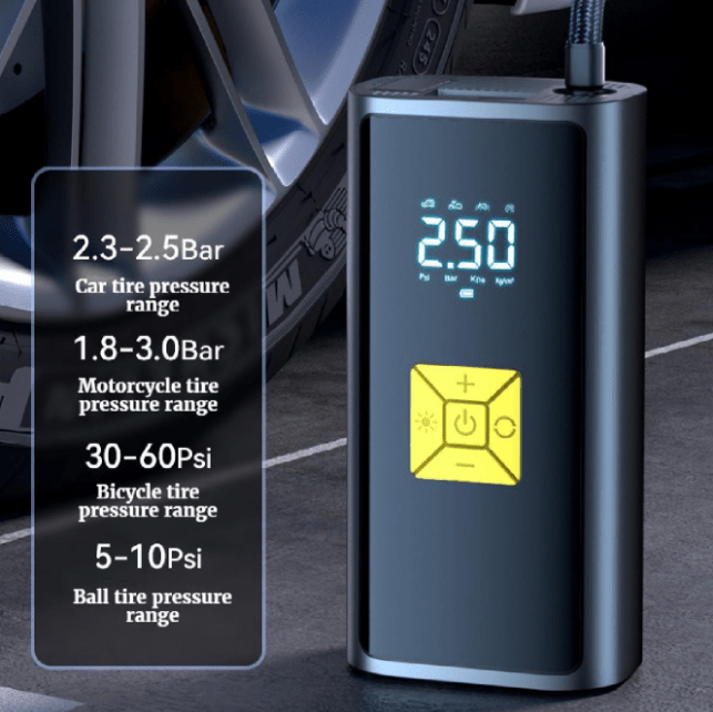 Avoid being stranded with a flat tyre ever again with the Multifunctional Tyre Inflator Car Air Compressor. Serving as the ultimate emergency companion for both your car and home. Featuring a robust air compression system capable of reaching up to 10 Bar, it can swiftly inflate anything from vehicle tyres to sports balls within minutes, providing the ideal solution for unforeseen flat tyre situations.