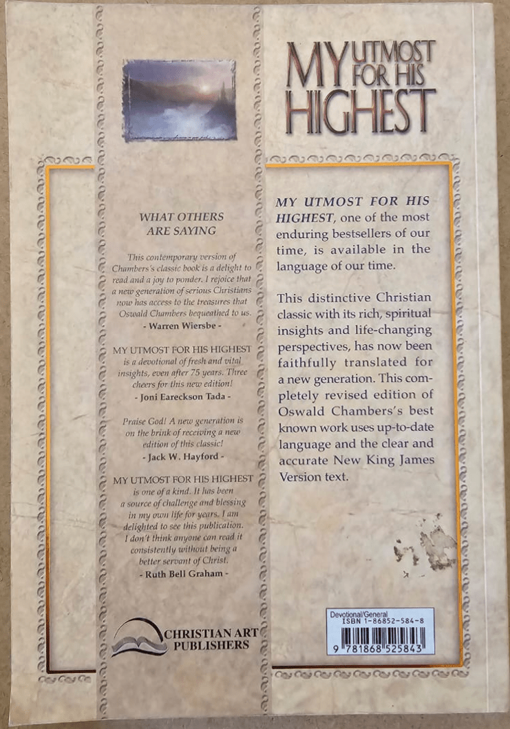 This classic by Oswald Chambers will point you to the timeless truths found in God’s Word and His promises for you. These Scripture-based readings—by turns comforting and challenging—will draw you into God’s presence and form you as a disciple of the Risen Lord. You’ll treasure their insight, still fresh and vital. And you’ll discover what it means to offer God your very best for His greatest purpose—to truly offer Him your utmost for His highest.