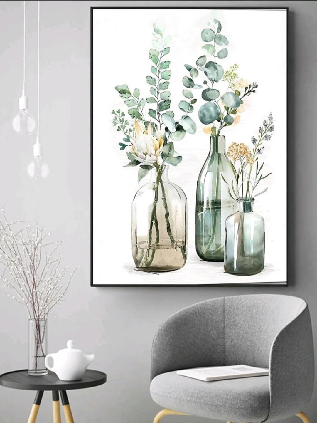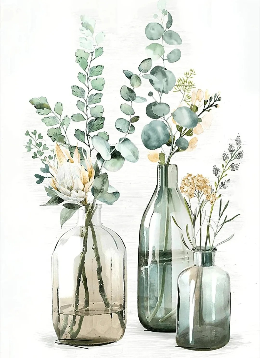 Flowers in 3Glass JarsPaint by Numbers: Flowers in 3 Glass Jars