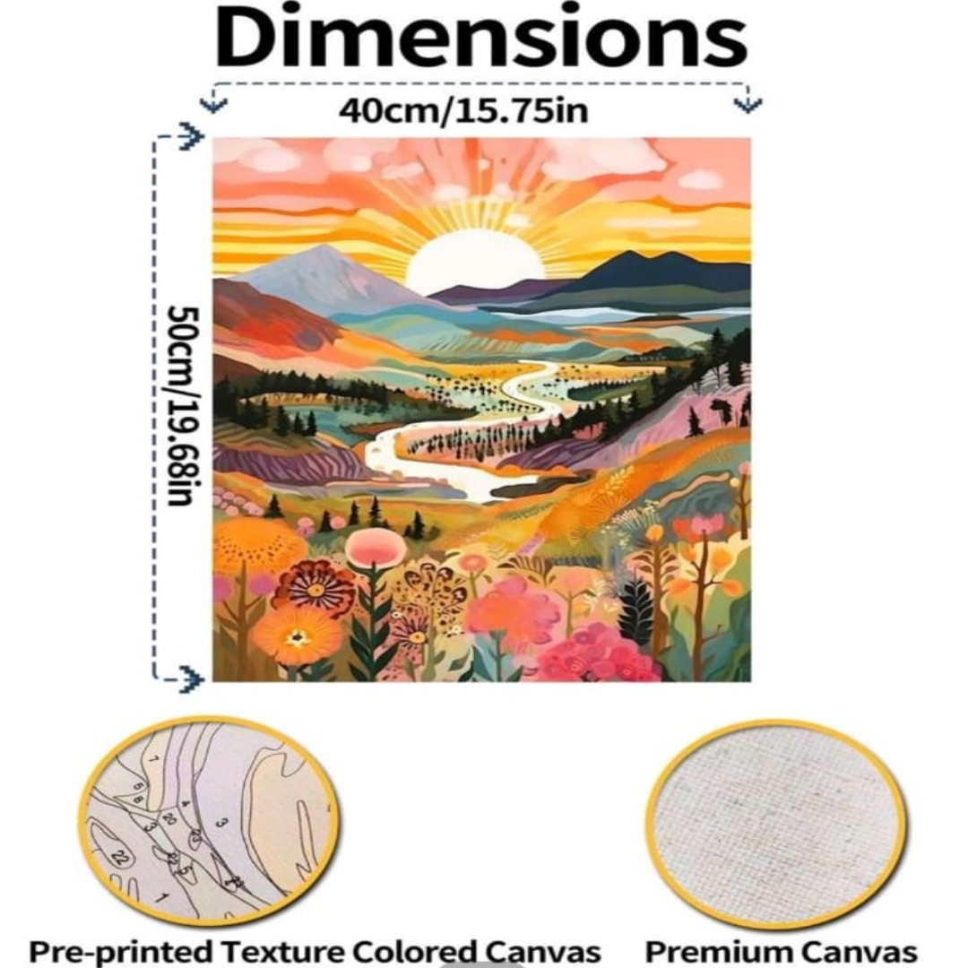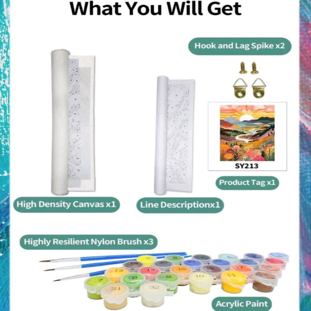 - high-quality 40x50 cm canvas with pre-printed numbered sections,