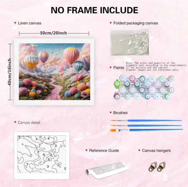 - high-quality 40×50 cm canvas with pre-printed numbered sections,
