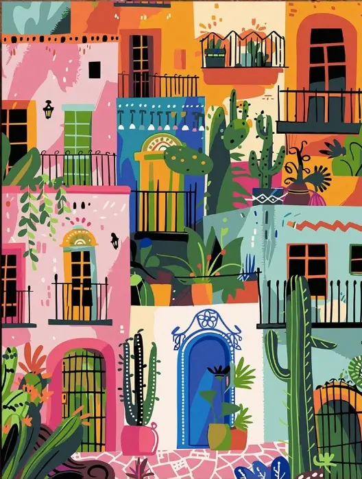 Paint by Numbers: Vibrant Desert Villa – Colourful Cactus Town