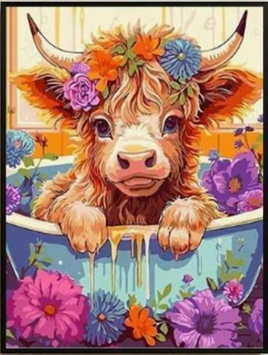 Paint by Numbers: Cow with flowers in bath