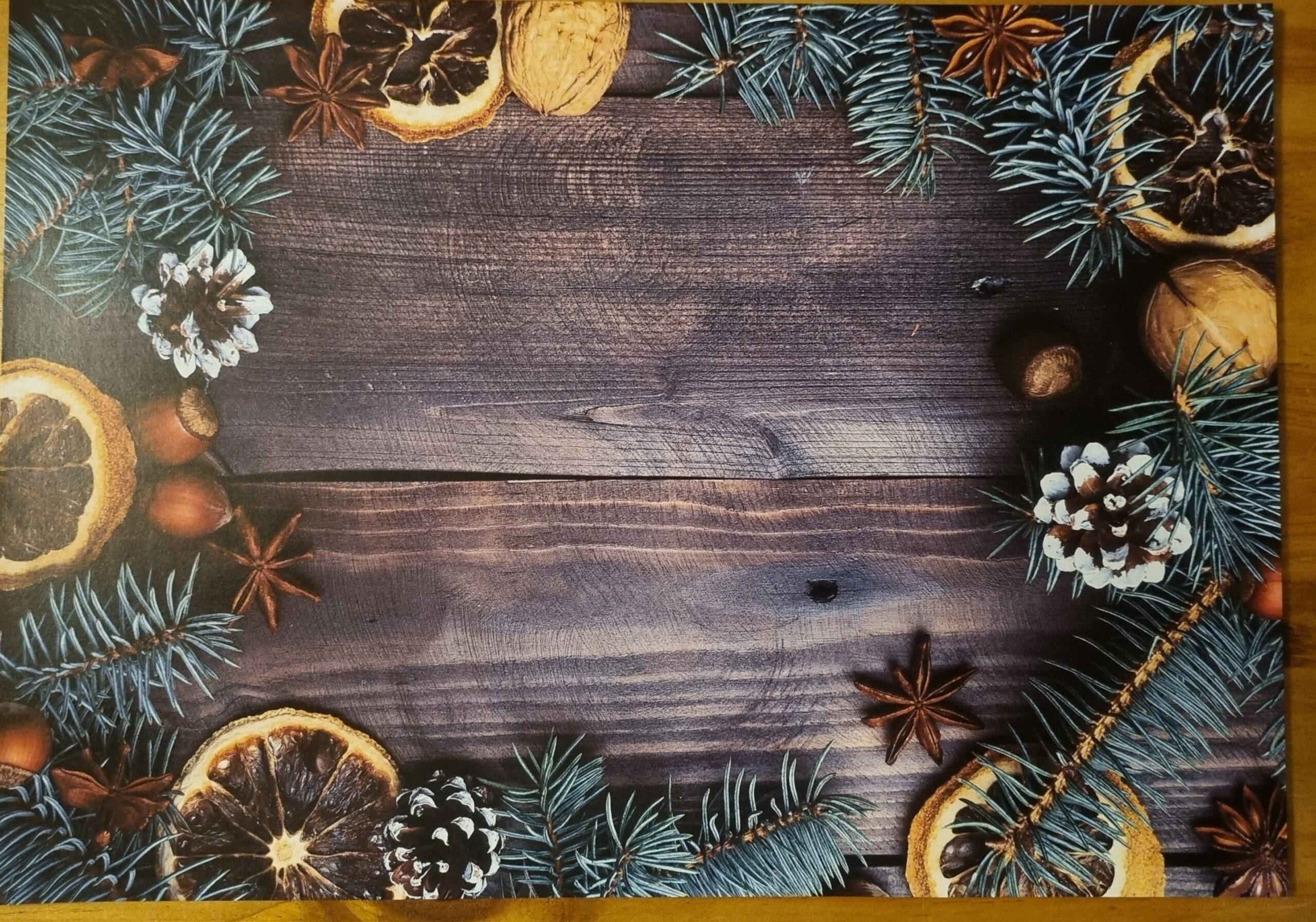 PVC Placemats: Wood with oranges, pine and anise