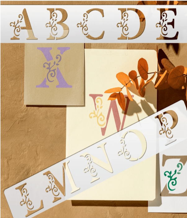 PVC Stencil: 5pc Floral Alphabets
