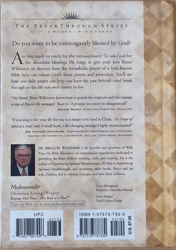 It’s a timeless prayer that produces timely results! Bruce Wilkinson takes readers to 1 Chronicles 4:10 to discover how they can release God’s miraculous power and experience the blessings God longs to give each of us.